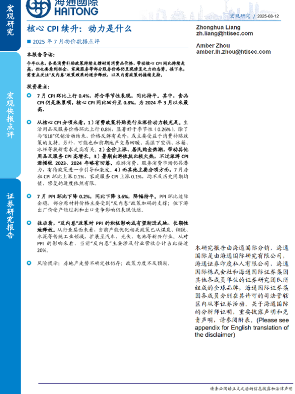 【海通国际】【202508】2025年7月物价数据点评:核心CPI续升,动力是什么-15页 证券期货研究报告