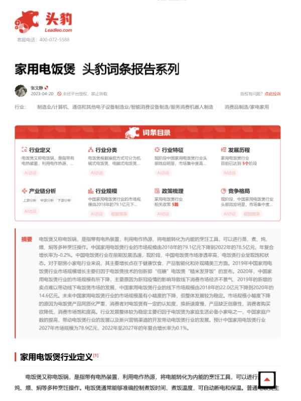 【头豹研究院】【20230420】家用电饭煲 头豹词条报告系列-21页 行业研究