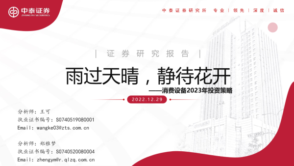 【中泰证券】【20221229】消费设备2023年投资策略:雨过天晴,静待花开-21页 行业研究