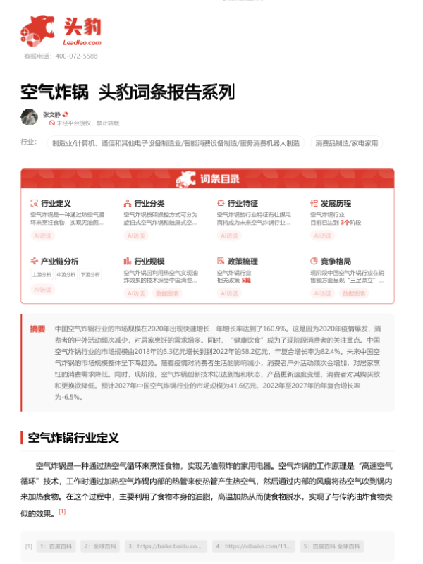 【头豹研究院】【20230612】空气炸锅 头豹词条报告系列-16页 行业研究