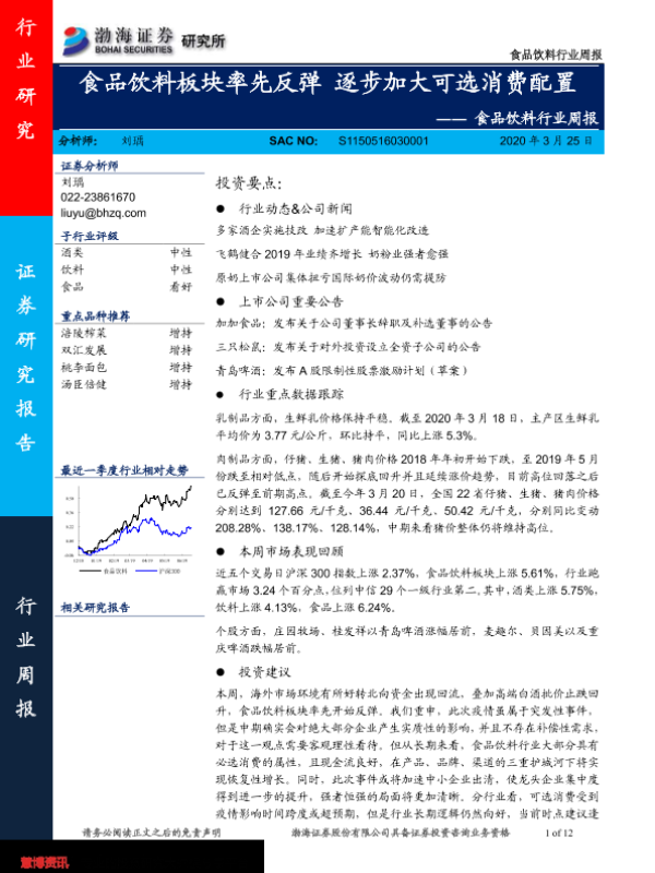【渤海证券】【20200325】食品饮料行业周报:食品饮料板块率先反弹 逐步加大可选消费配置-12页 行业研究