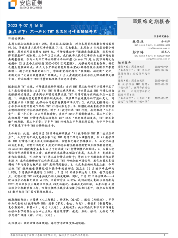 【安信证券】【20230716】赢在当下:不一样的TMT第三波行情正酝酿开启-29页 行业研究