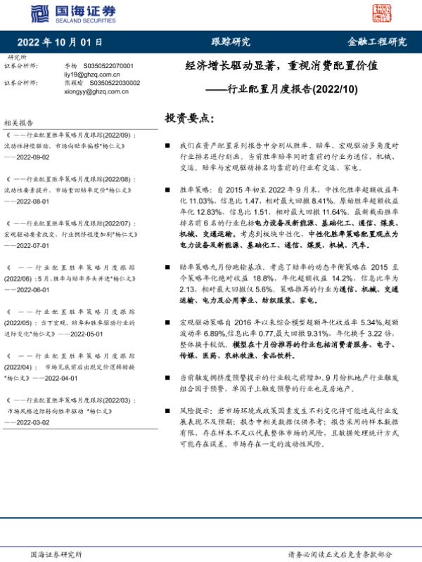 【国海证券】【20221001】行业配置月度报告:经济增长驱动显著,重视消费配置价值-19页 行业研究