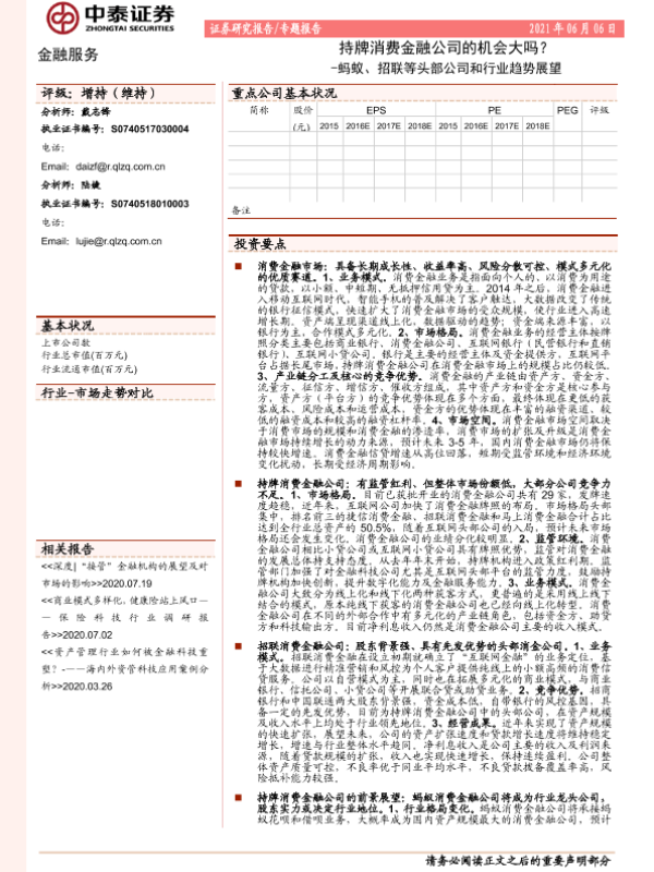 【中泰证券】【20210606】金融服务行业:蚂蚁、招联等头部公司和行业趋势展望,持牌消费金融公司的机会大吗?-34页 行业研究