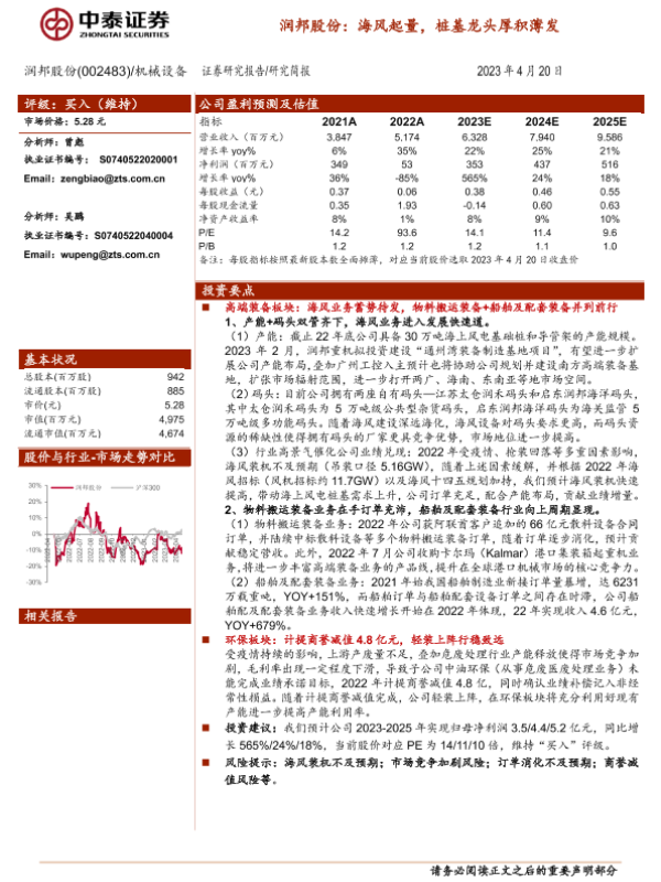 【中泰证券】【20230420】润邦股份002483.SZ:海风起量,桩基龙头厚积薄发-17页 行业研究