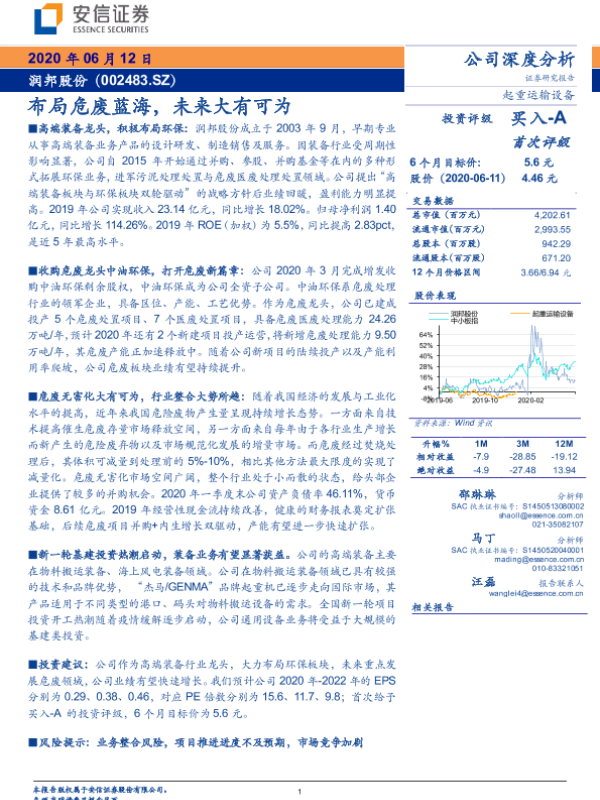 【国海证券】【20200609】战略转型升级加速,危废布局前景广阔——润邦股份(002483)深度报告-23页 行业研究