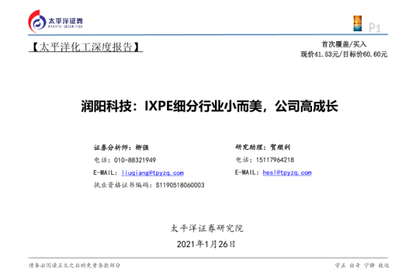 【太平洋证券】【20210126】润阳科技:IXPE细分行业小而美,公司高成长-28页 行业研究