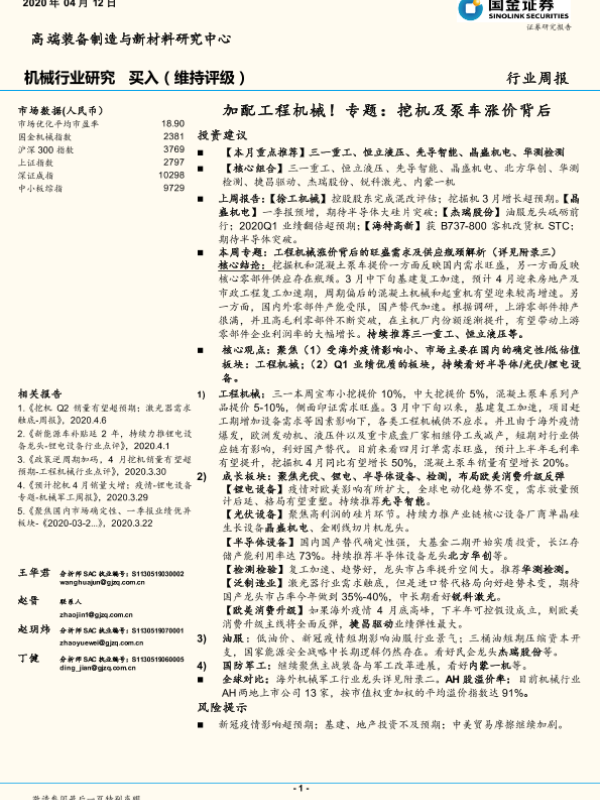 【华泰证券】【20200413】工程机械行业点评:涨价反映供需矛盾,持续性待观察-3页 行业研究