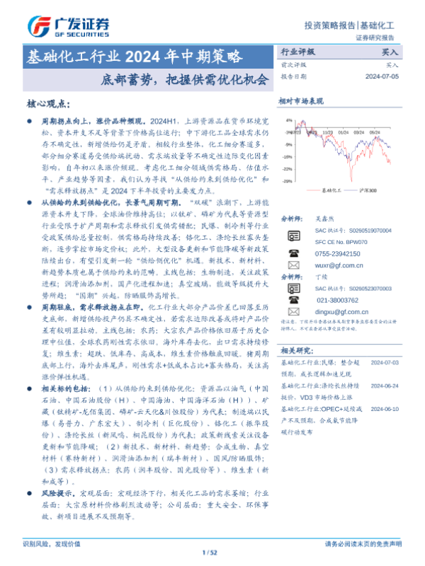 【广发证券】【20240705】基础化工行业2024年中期策略:底部蓄势,把握供需优化机会-52页 行业研究