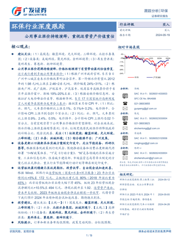 【广发证券】【20240519】环保行业深度跟踪:公用事业涨价持续演绎,重视运营资产价值重估-13页 行业研究