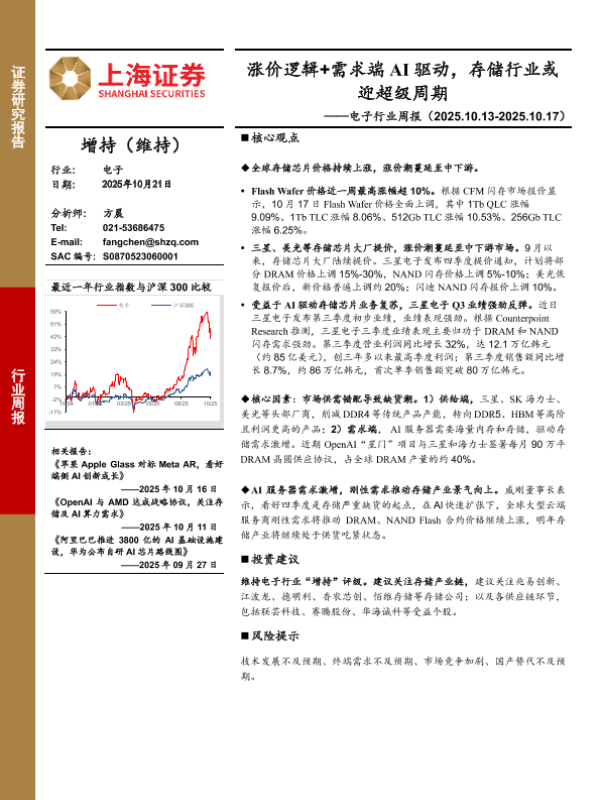 【上海证券】【202510】涨价逻辑+需求端AI驱动,存储行业或迎超级周期-3页 证券期货研究报告