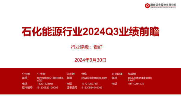 【浙商证券】【20240930】石化能源行业2024Q3业绩前瞻-19页 行业研究