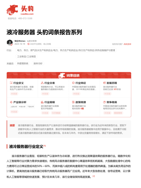 【头豹研究院】【20231130】液冷服务器头豹词条报告系列-20页 行业研究