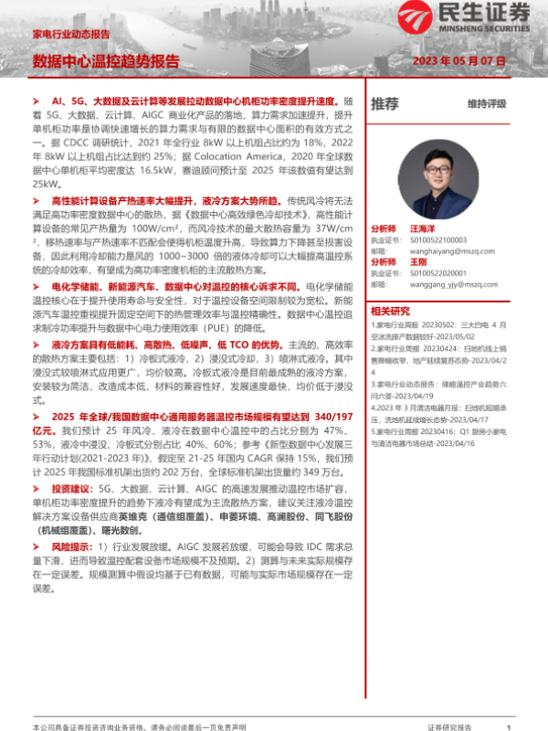 【民生证券】【20230507】家电行业动态报告:数据中心温控趋势报告-16页 行业研究
