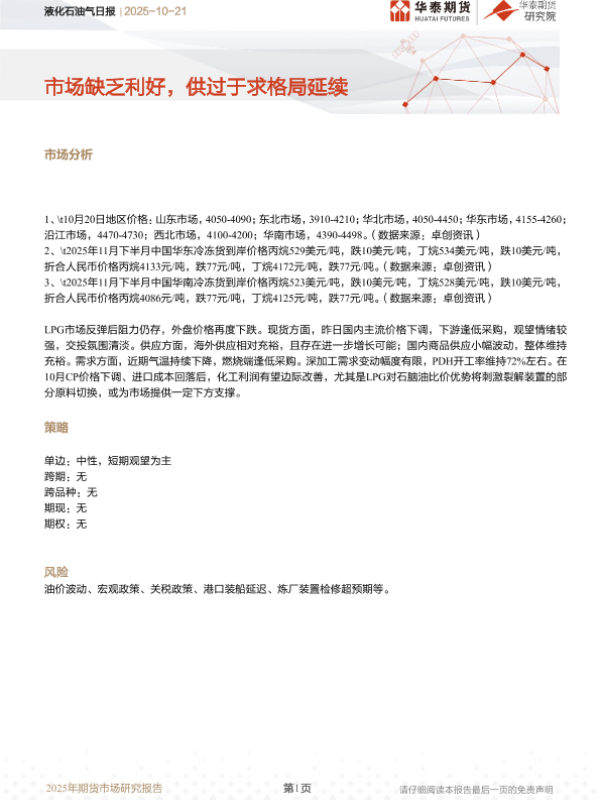 【华泰期货】【202510】液化石油气日报 | 市场缺乏利好,供过于求格局延续-7页 证券期货研究报告
