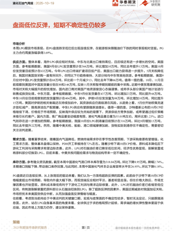 【华泰期货】【202510】液化石油气周报 | 盘面低位反弹_短期不确定性仍较多-9页 证券期货研究报告