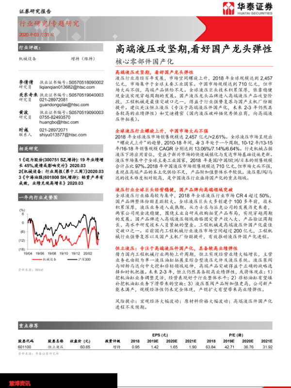 【华泰证券】【20200331】20200331-华泰证券-机械设备专题研究:核心零部件国产化-高端液压攻坚期,看好国产龙头弹性-20页 行业研究