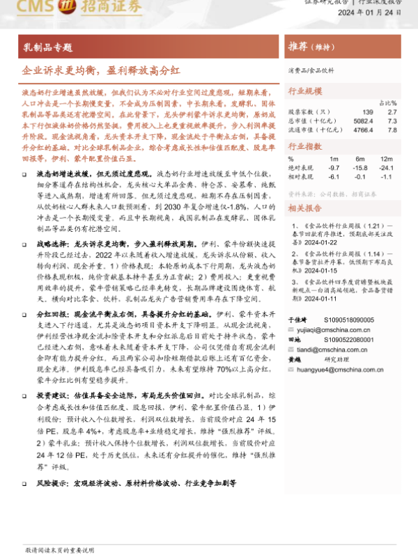 【海通证券】【20240124】20240124-招商证券-乳制品专题:企业诉求更均衡,盈利释放高分红-20页 行业研究