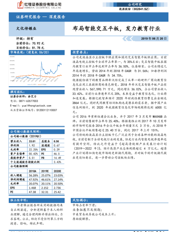 【红塔证券】【20190620】布局智能交互平板,发力教育行业-38页 行业研究