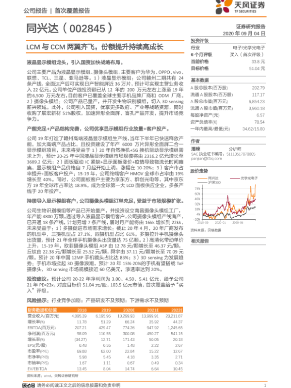 【天风证券】【20200904】2020.09.04-同兴达:LCM与CCM两翼齐飞,份额提升持续高成长-22页 行业研究