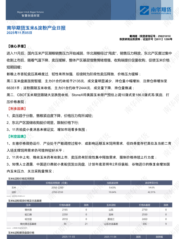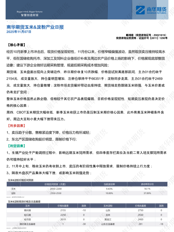 【南华期货】【202511】玉米&淀粉产业日报-5页 证券期货研究报告