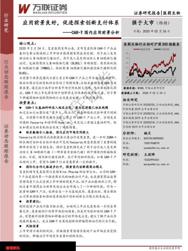 【万联证券】【20200226】CAR-T国内应用前景分析-7页 行业研究