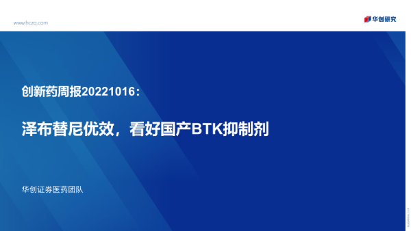 【华创证券】【20221016】创新药周报:泽布替尼优效,看好国产BTK抑制剂-27页 行业研究