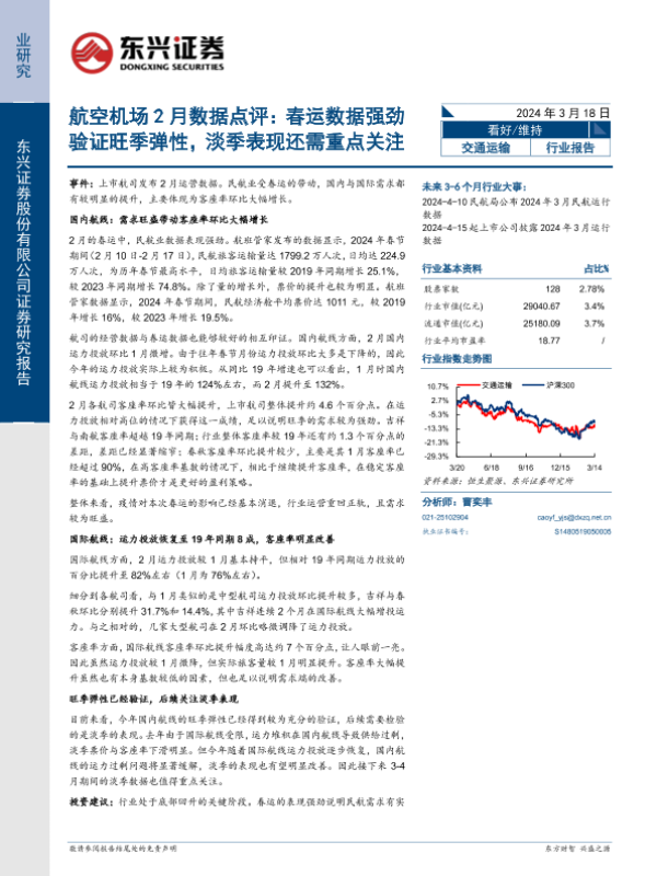 【东兴证券】【20240318】交通运输行业航空机场2月数据点评:春运数据强劲验证旺季弹性,淡季表现还需重点关注-10页 行业研究