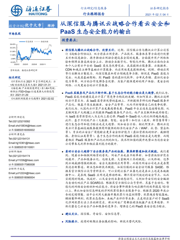 【海通证券】【20210204】从深信服与腾讯云战略合作看云安全和PaaS生态安全能力的输出-2页 行业研究