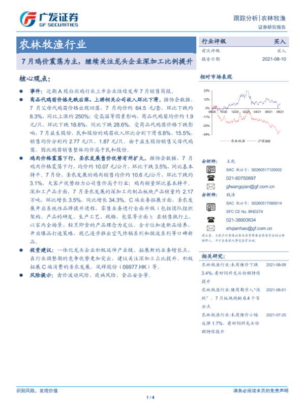 【广发证券】【20210810】7月鸡价震荡为主,继续关注龙头企业深加工比例提升-4页 行业研究