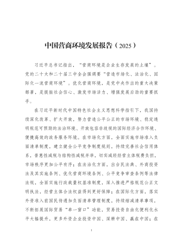 【中共中央办公厅、国务院办公厅】【2025】中国营商环境发展报告-37页 政策文件