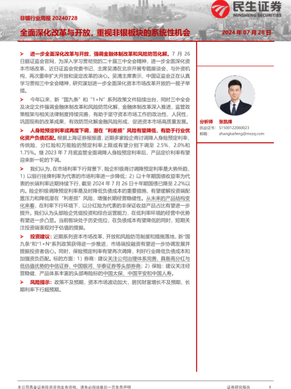 【民生证券】【20240728】非银行业周报:全面深化改革与开放,重视非银板块的系统性机会-11页 行业研究
