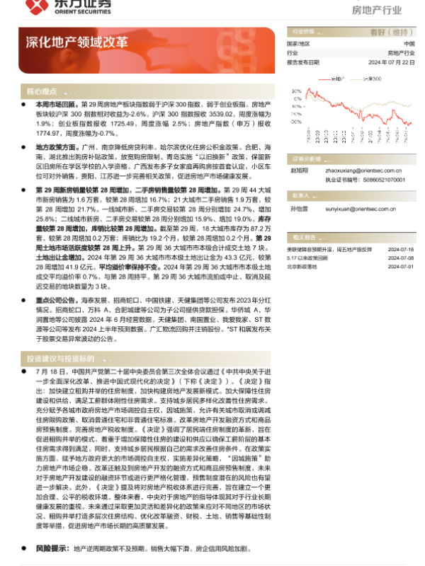 【东方证券】【20240722】房地产行业周报:深化地产领域改革-14页 行业研究