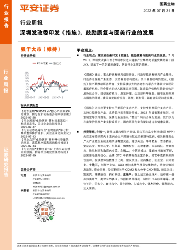 【平安证券】【20220731】深圳发改委印发《措施》,鼓励康复与医美行业的发展-7页 行业研究