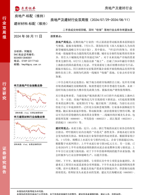 【东莞证券】【20240811】房地产及建材行业双周报:二手房成交持续回暖,深圳“收储”落地行业去库存有望加速-15页 行业研究