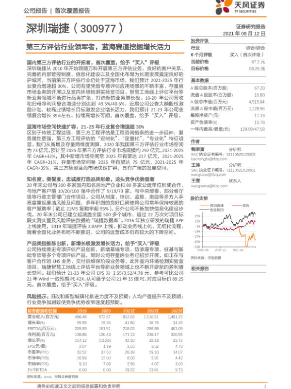 【天风证券】【20210812】深圳瑞捷-300977.SZ-第三方评估行业领军者,蓝海赛道挖掘增长活力-26页 行业研究