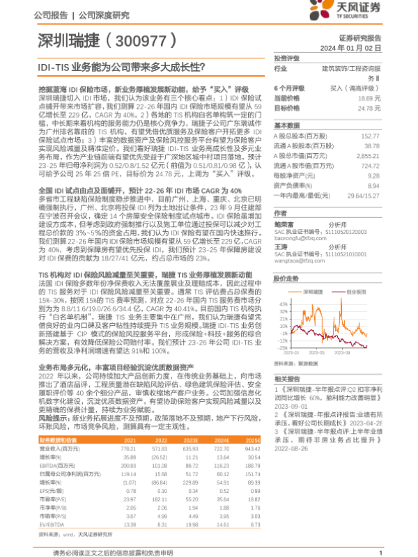【天风证券】【20240102】深圳瑞捷-300977.SZ-IDI-TIS业务能为公司带来多大成长性?-25页 行业研究