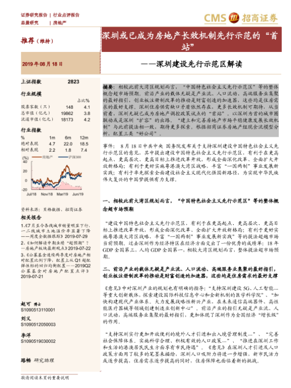 【海通证券】【20190818】深圳建设先行示范区解读 - 深圳或已成为房地产长效机制先行示范的“首站”-5页 行业研究