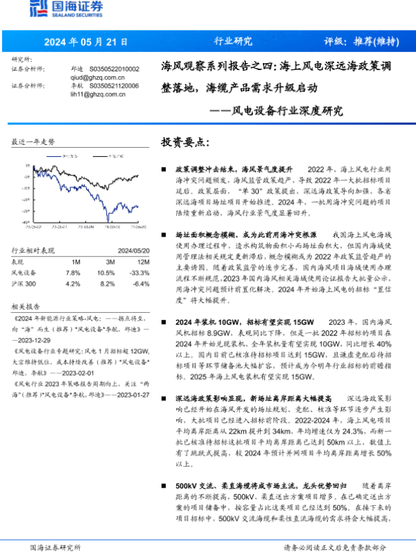 【国海证券】【20240521】海风观察系列报告之四:海上风电深远海政策调整落地,海缆产品需求升级启动-41页 行业研究