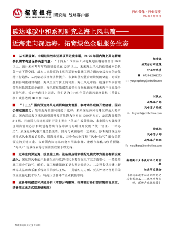 【招商银行】【20240822】碳达峰碳中和系列研究之海上风电篇——近海走向深远海,拓宽绿色金融服务生态-26页 行业研究