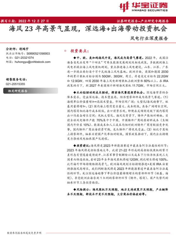 【华宝证券】【20221227】深度报告-20221227-华宝证券-风电行业深度报告_海风23年高景气显现_深远海+出海带动投资机会-20页 行业研究