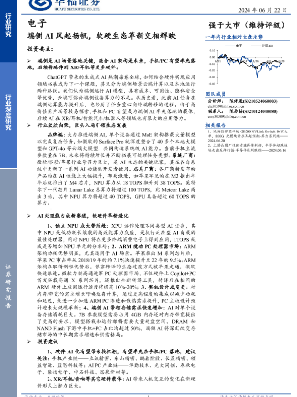 【华福证券】【20240622】电子:端侧AI风起扬帆,软硬生态革新交相辉映-18页 行业研究