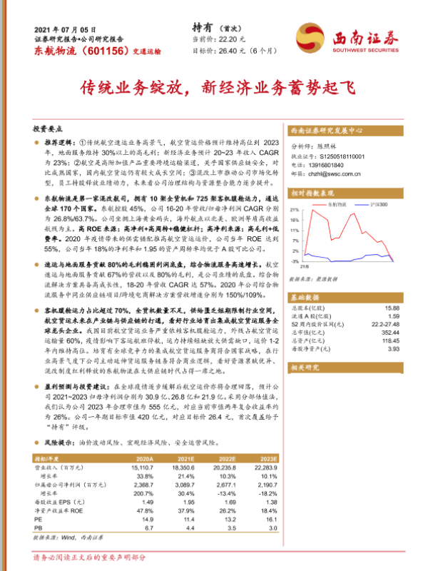 【西南证券】【20210705】20210705-西南证券-东航物流-601156.SH-传统业务绽放,新经济业务蓄势起飞-32页 行业研究