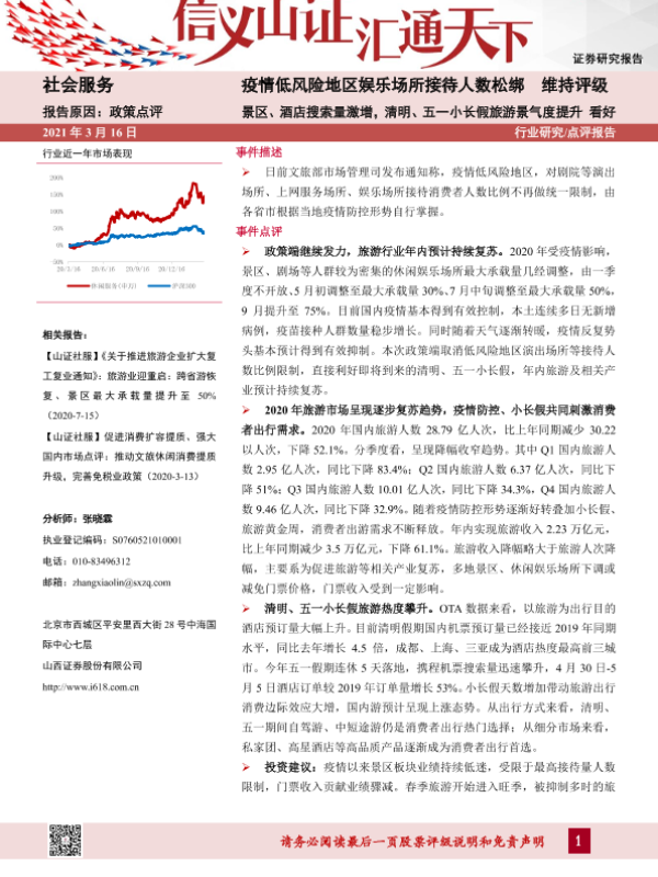 【山西证券】【20210316】社会服务行业:疫情低风险地区娱乐场所接待人数松绑-3页 行业研究