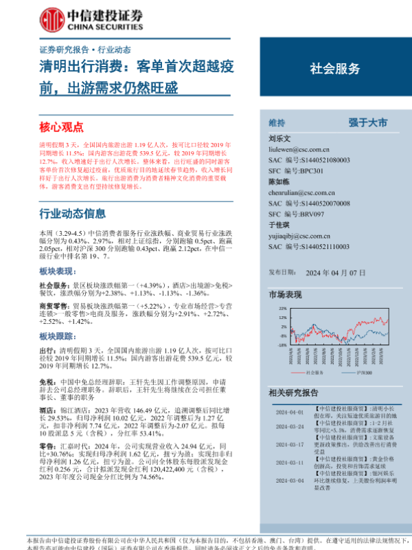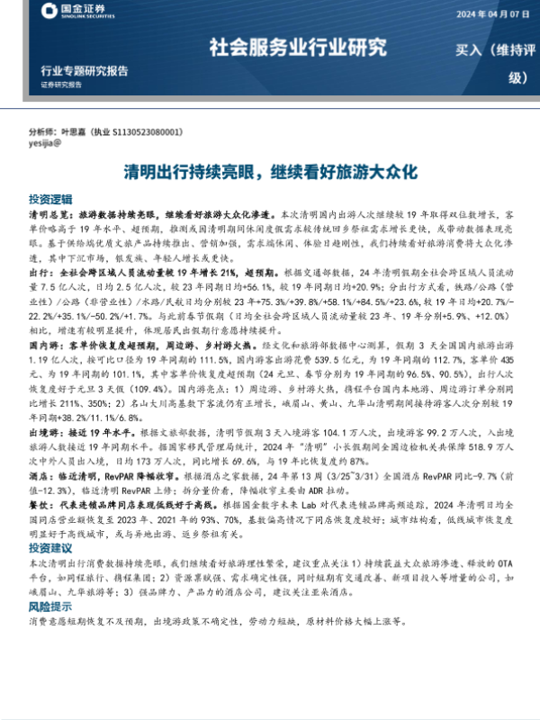 【国金证券】【2024】社会服务业行业研究:清明出行持续亮眼,继续看好旅游大众化-11页 行业研究