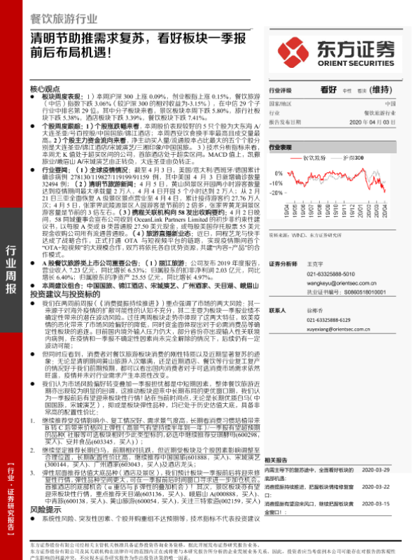 【东方证券】【20200403】餐饮旅游行业周报:清明节助推需求复苏,看好板块一季报前后布局机遇!-27页 行业研究