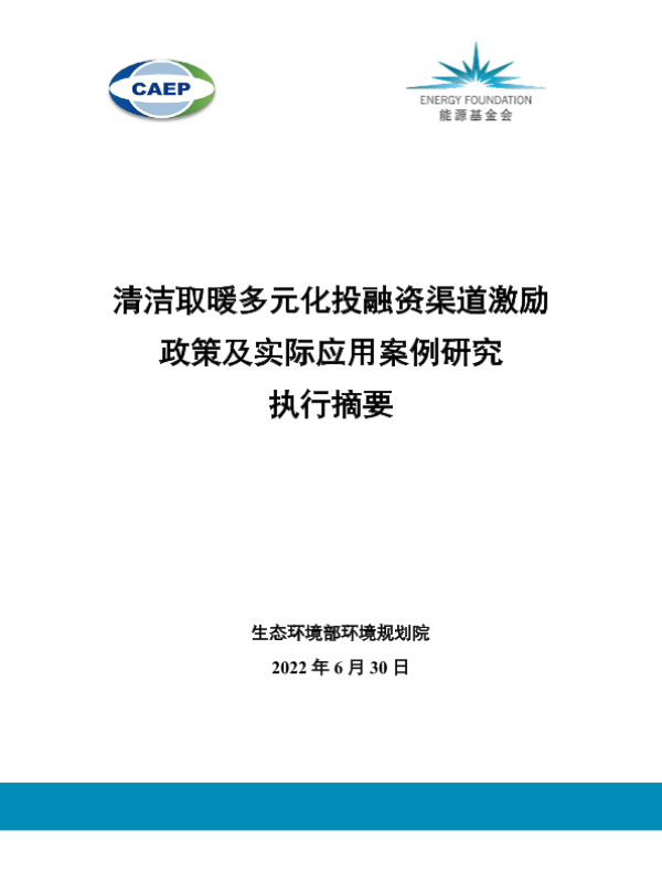 【生态环境部环境规划院】【20220630】清洁取暖多元化投融资渠道激励政策及实际应用案例研究执行摘要-15页 行业研究
