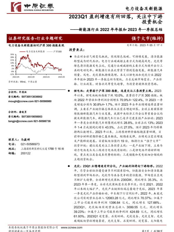 【中原证券】【20230517】2023Q1盈利增速有所回落,关注中下游投资机会-38页 行业研究
