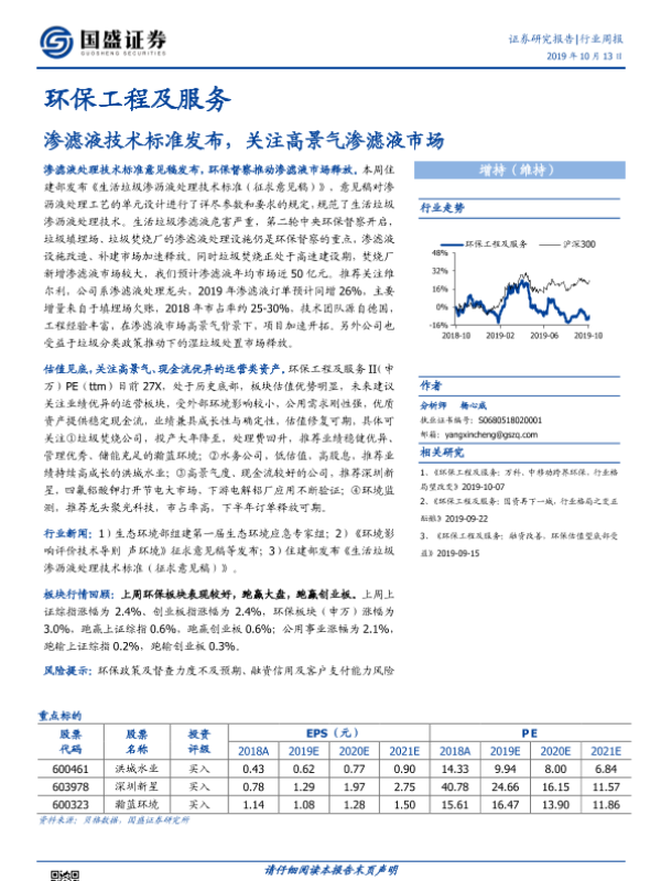 【国盛证券】【20191013】环保工程及服务行业周报:渗滤液技术标准发布,关注高景气渗滤液市场-13页 行业研究