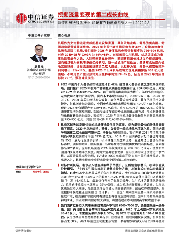 【中信证券】【20220208】物流和出行服务行业机场复兴新起点系列之一:挖掘流量变现的第二成长曲线-39页 行业研究